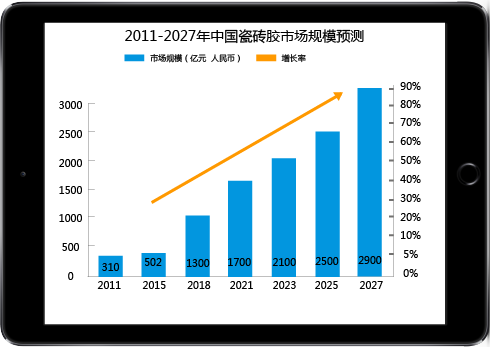 五至十年,瓷砖胶发展黄金期,抓得住就是你的!瓷砖胶在中国已经开始普及,在中国目前13亿居民中,每年使用率成5倍增长,未来5年瓷砖胶行业,每年就有约400个亿的市场。瓷砖胶代替水泥砂浆的时代已经来临!