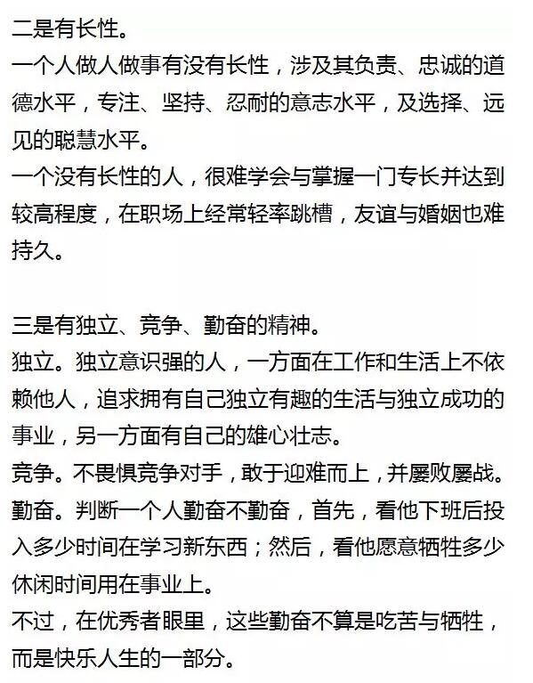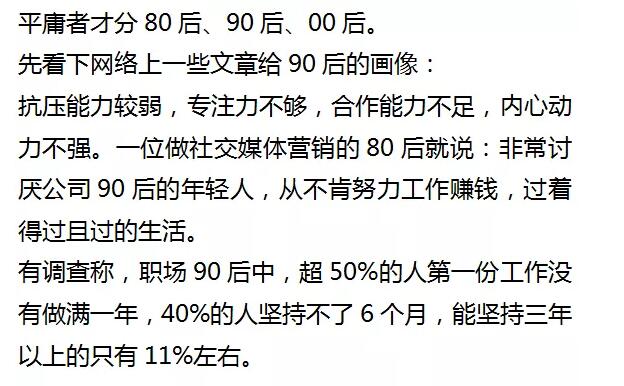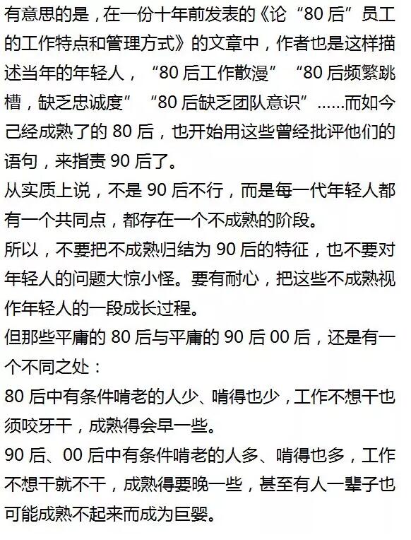 优秀的人基本人格特质都一样,不管是哪一代。 大家还可能注意到了,上面提到的优秀90后几点特质,同60后、70后、80后的优秀分子有区别吗?