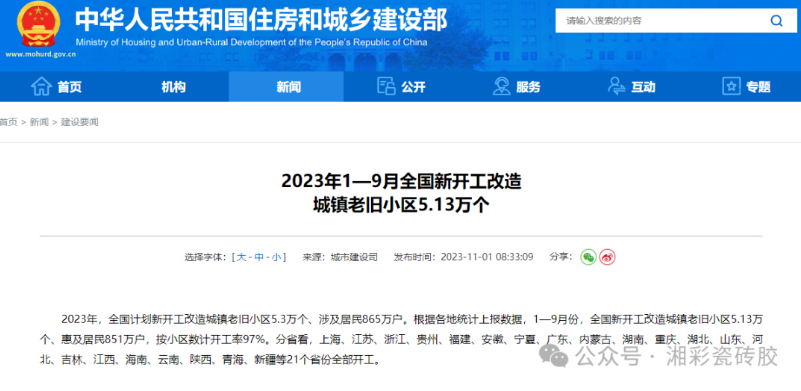 住建部2023年宣布全国改造城镇老旧小区5.13万个,上月住建部部长倪虹在十四届全国人大二次会议民生主题记者会上表示:2024年全国将再改造5万个城镇老旧小区。